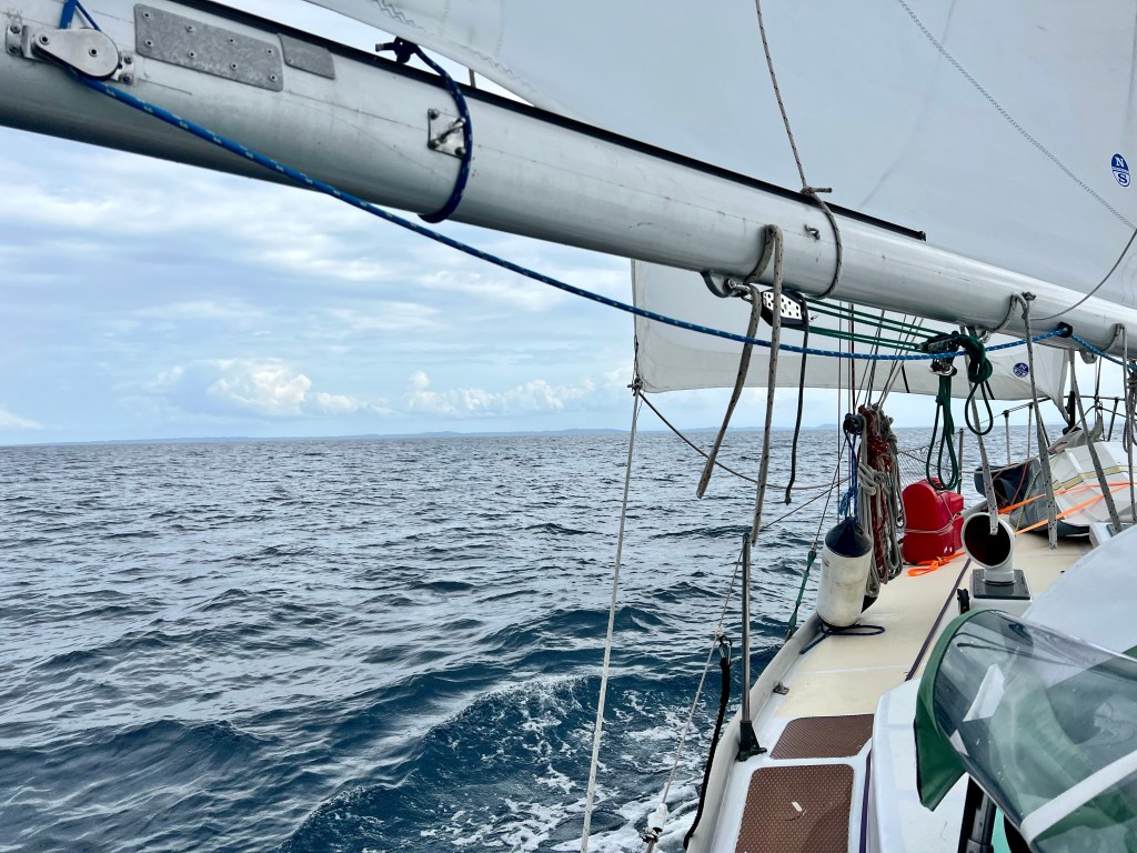 Jamaica was in our sights, but the winds died out on us. The sweltering sun beams down and no matter what we do, we just cannot cool ourselves enough. Having to run our diesel engine to keep propelling forward and get past the dead calm zone, our frustrations begin to grow. The loud rattling engine pumping gross fumes and exhaust is awful. We’ve had concerns about how hot the engine has been running lately too, so nerves spike again. We stink from nonstop sweating, and the heat keeps me away from the hot stove. We lean on bread, peanut butter, and cheese. Trying to sleep in the bed or settee feels impossible, rolling in our own discomforts. Moral was taking a sharp decline, and this blazing day seemed to last forever.